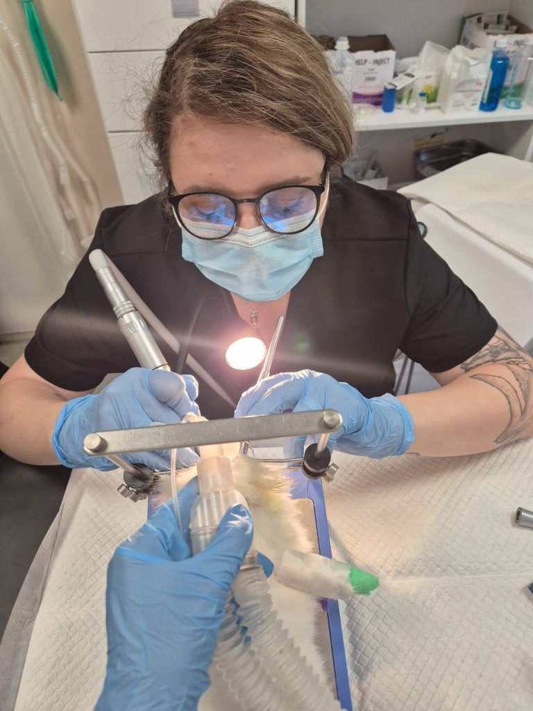 - Boli dentare la iepuri și rozătoare: Dinții care cresc continuu sunt o problemă majoră la iepuri, hamsteri și porcușori de Guineea. Malocluzia (dinți crescând neuniform) sau fracturile dentare duc la salivare excesivă, incapacitate de a mesteca, scădere în greutate și abcese faciale. În cazuri severe de afecțiuni dentare, singura soluție este extragerea chirurgicală a dinților afectați. De pildă, Pet Stuff realizează extracții de incisivi și măsele, folosind instrumente fine și anestezie locală/inhalatorie, pentru a corecta malocluzia și a ameliora durerile.